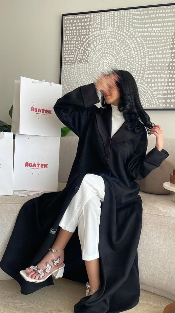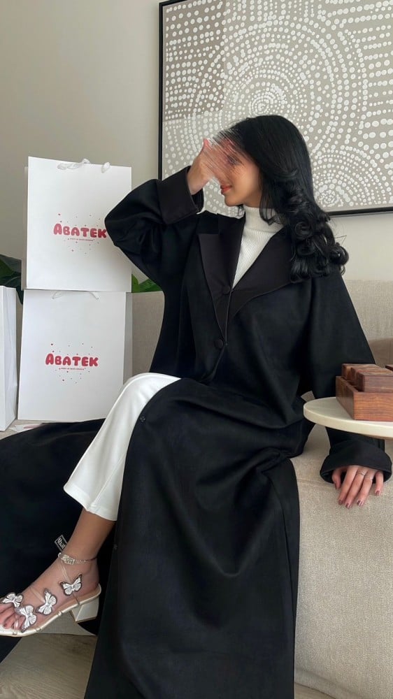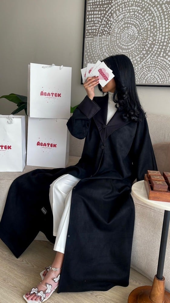 عباية مخمل بياقةنوع القماش : شامواه• نوع القصه : قصه عادية .• نوع القفلة : طقطق .• الاضافات : طرحة مع العباية بمقاس 2متر 75x سم
