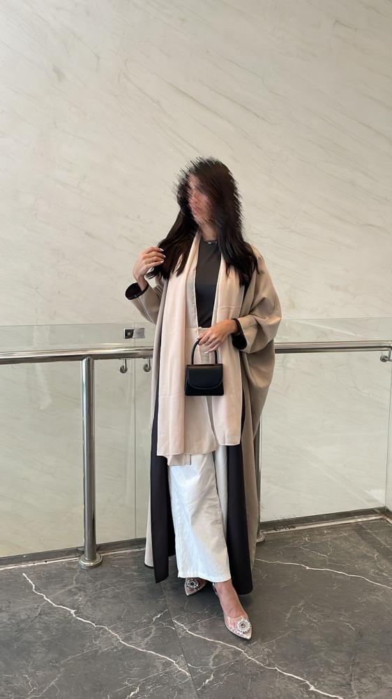 عباية دبل فيس اسود وبيج• القماش : باربي• القصه : نص بشت• الاضافات : طرحة مع العباية بمقاس 2متر 75x سم